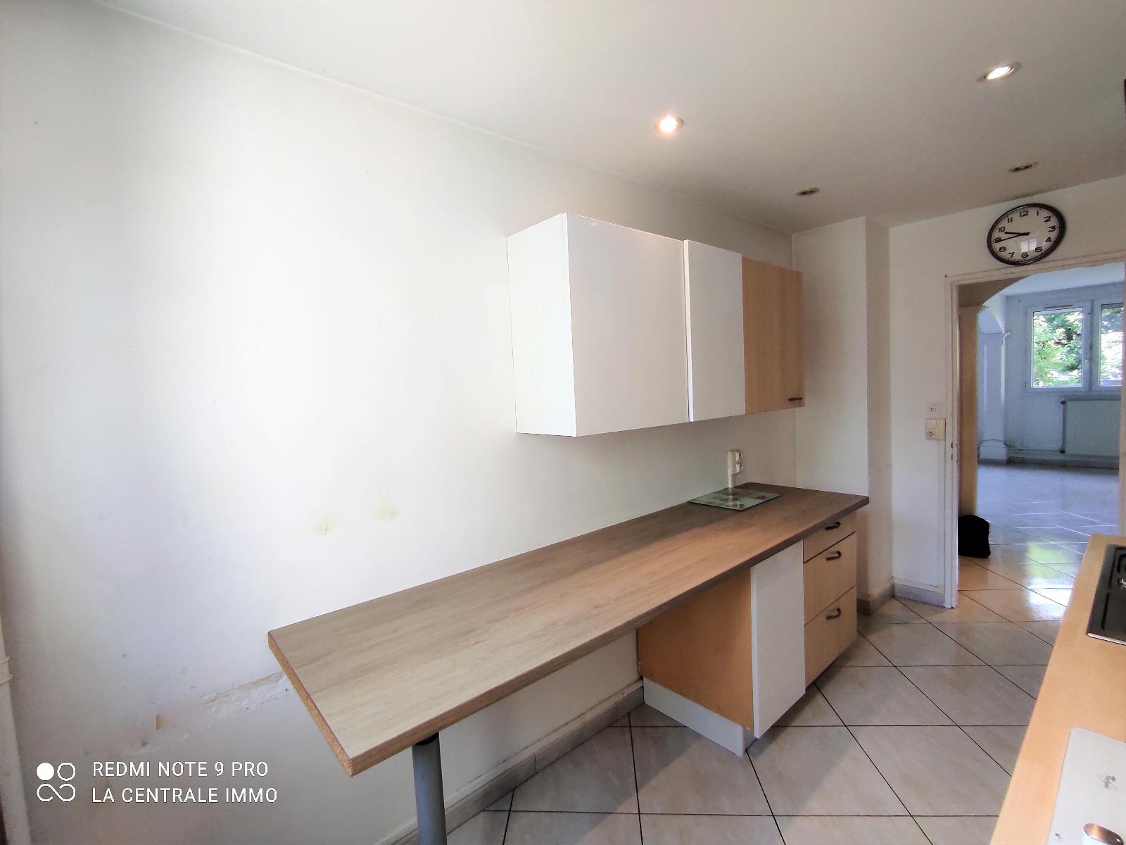 En rez-de-chaussée surélevé et traversant, il se compose d’un hall d’entrée avec placard, d’un grand séjour double de 28m² très lumineux ouvrant sur une loggia fermée côté jardin, d’une cuisine aménagée et équipée (plaque de cuisson gaz, four, hotte) avec un cellier attenant, de deux chambres dont une avec placard, d’une salle d’eau, de WC séparés, d’un dressing et d’une cave.