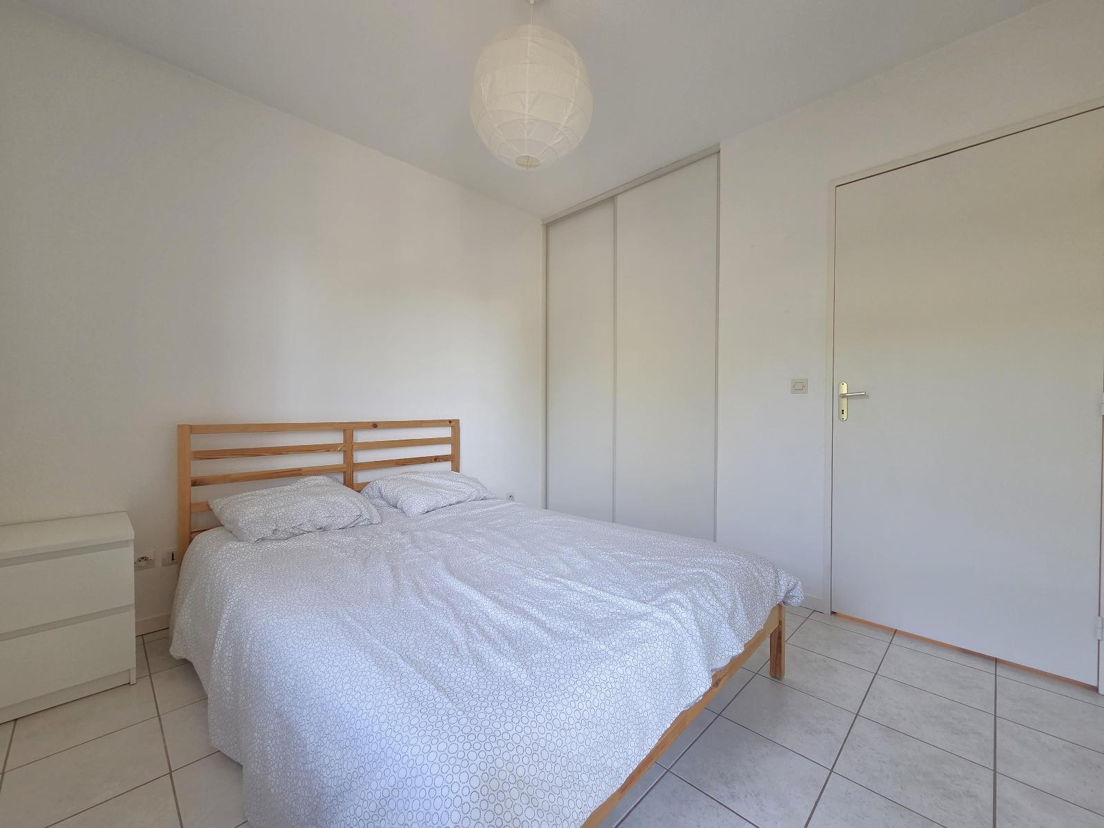 Ce T2 meublé de 40.39m² au 3ème étage avec ascenseur d’un immeuble sécurisé se compose d’une grande pièce principale de 25.50m² avec une cuisine aménagée et équipée (plaques de cuisson, réfrigérateur, four, lave-vaisselle, hotte, lave-linge) ouvrant sur le séjour donnant sur un petit balcon. Une chambre avec placard de rangement et une salle de bain avec WC.