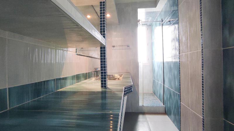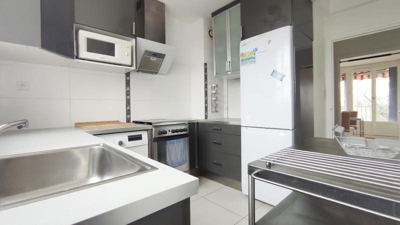 La cuisine est indépendante et entièrement équipée (plaques de cuisson, four, hotte, micro-ondes, réfrigérateur). L’appartement comprend également une salle d’eau avec douche et des WC séparés.
