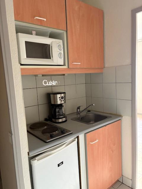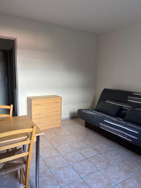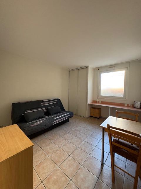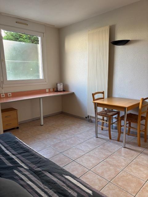 Appartement Meublé 1 pièce de 19.20 m² – RESIDENCE ETUDIANTE MONTHOLON proche gare SNCF – STUDIO MEUBLE E06 de 19.20m² comprenant : un hall d’entrée, une kitchenette aménagée (rangements hauts et bas, plaque de cuisson électrique, évier, réfrigérateur, micro-onde, kit vaisselle), une pièce principale avec plan de travail et placard mural (penderie + étagères), un couchage, une table à manger, chaises, une table de chevet, une lampe de bureau et une salle d’eau avec WC (douche, meuble vasque et miroir).
