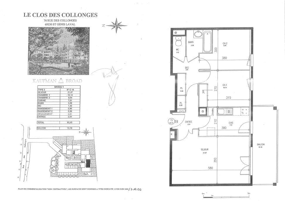 Appartement T3 62.43m²- SAINT GENIS LAVAL – Proche des commerces, et d’un centre commercial situé à 5 minutes en voiture, l’appartement bénéficie également d’un accès pratique aux transports en commun TCL (bus 88, 17 et S9). Il se trouve rue des Collonges, à proximité de l’autoroute A450.