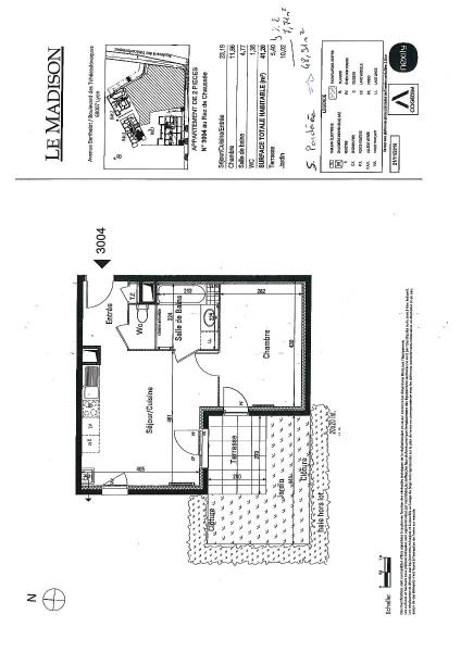 Appartement T2 14.20m² – Lyon 7 – Appartement de type 2 de 41.20m² situé Avenue Berthelot à Lyon 7 , dans une copropriété récente , calme et sécurisée, accessible en Tram T2 ( Route de vienne), à 15minutes à pied de la gare de Jean Mace, et proche des commerces.