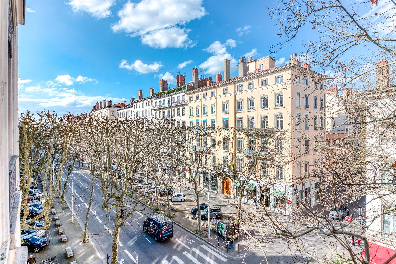 Situé en étage élevé et baigné de lumière grâce à sa double exposition, il béneficie d’une vue dégagée sur les arbres et l’opéra.