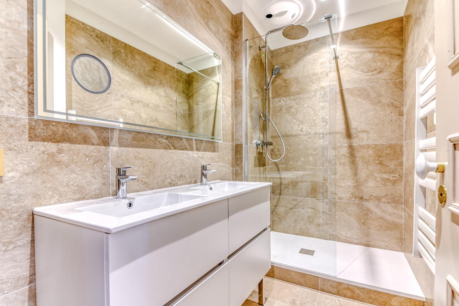 Cet appartement d’angle conjugue le charme de l’ancien et une rénovation contemporaine de qualité.